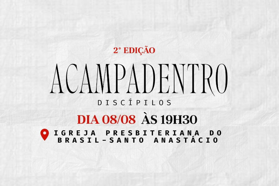 No dia 8 de agosto teremos o nosso segundo acampadentro com os adolescentes, com o tema "Discípulos"! Vai ser um momento superespecial de comunhão e diversão juntos.